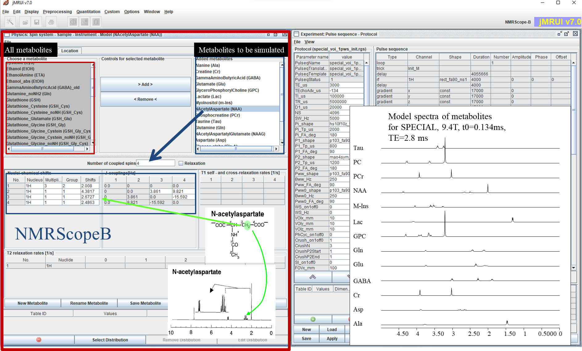 The Virtual Scanner, NMRScope-B, is a powerful simulation tool integrated into jMRUI. It allows simulation of basis sets for various sequences such as STEAM, PRESS, MEGA-PRESS, semi-LASER, or SPECIAL, which can be used in advanced fitting algorithms like, e.g., AQSES, QUEST, LCModel. The software is also designed for testing new sequence ideas, optimizing existing protocols, and for educational purposes. The NMRScope-B computational core has been developed and maintained solely by our team. If you have an inquiry, please contact us through the email jmrui@isibrno.cz. For more information see jMRUI website http://www.jmrui.eu/features/virtual-scanner/.