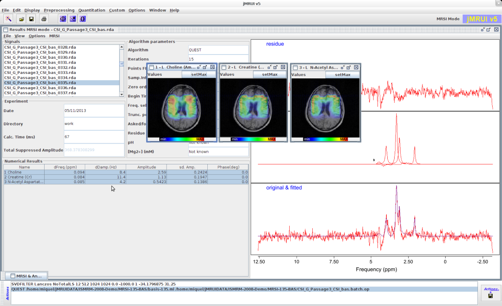jMRUI (developed by the MRUI Consortium) is a software package for advanced time-domain analysis of magnetic resonance spectroscopy (MRS) and spectroscopic imaging (MRSI) data. Through a user-friendly graphical interface biomedical researchers and clinical radiologists can use state-of-the-art signal processing algorithms to analyse and quantify spectroscopic data. A member of our team currently oversees software development and management. If you have inquiries regarding new functionality or any other requests related to MR spectra processing, please contact us at jmrui@isibrno.cz. For more information about jMRUI see website www.jmrui.eu.